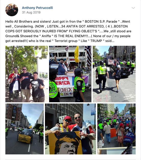 14/ So it's no surprise that Nazis like Anthony Petruccelli and his friends at Super Happy Fun America would come together to support the police. We'll be there to protest the rally. Details on the counter here: https://www.facebook.com/events/1040880616281293/ …pic.twitter.com/ZZ2NIzSPa4