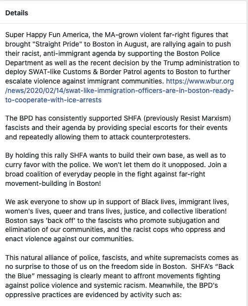 15/ I'll be dropping action items on Super Happy Fun America all week. Follow @Bos_Solidarity and @GMonsterAntifa for more updates. The police won't protect us. They protect Nazis and engage in violent intimidation of leftist protesters. Who protects us? We protect us. ❤️🖤✊
