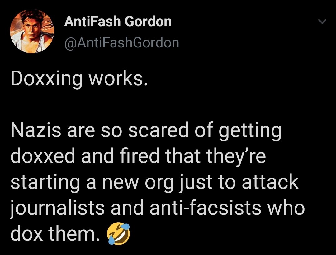 Yes, you fucking galaxy brain-- giving out the home address of a socialist's parents is exactly like how I expose the identities of neo-Nazis planning violent attacks on innocent people.