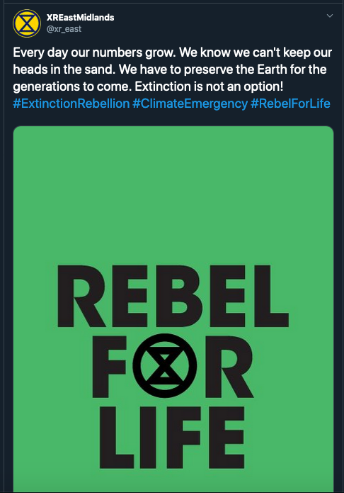That account has been around for six months, and has been posting eco-fascist garbage the entire time, and was followed by a long list of XR chapters. And now they want nothing to do with it? Their actual message is indistinguishable from eco-fascist claptrap.pic.twitter.com/iaED9vUBLf