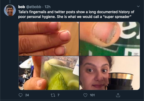 FYI, some of you are following @/atbobb, who is currently stalking a leftist journalist, spreading a conspiracy about her endangering healthcare workers, and obsessing over her fingers. Fuck misogynists who claim to be leftists and score points by yelling at women online. ❤️🖤✊pic.twitter.com/sH8euqfhdR