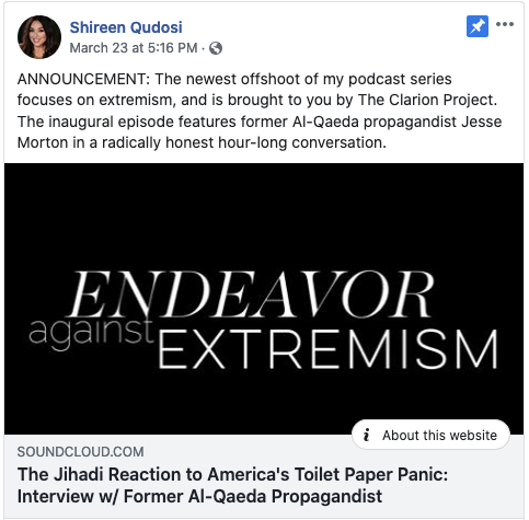 Ironic that the podcast you did that on is from Light Upon Light, which is collaborating with The Clarion Project, an anti-Islam hate group. How's laundering hate ideologies going for you?pic.twitter.com/XVyA4JbF0w