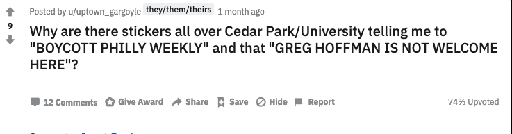 @gwensnyderPHL this was on a pole in my UC hood. Are you familiar with him?pic.twitter.com/K9UODL06o5