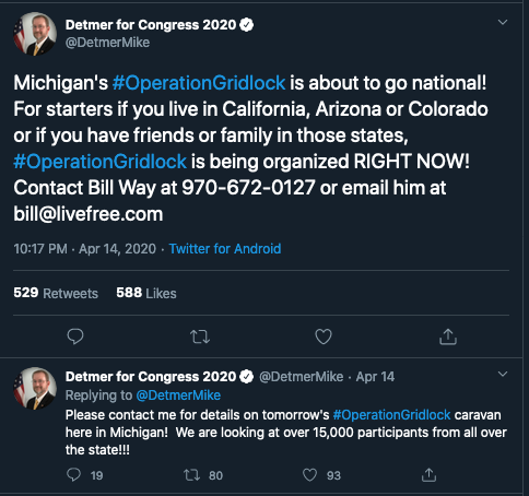 Somebody did some extremely basic WHOIS searching and found that the person who set up all the "reopen $STATENAME" protest web sites is in fact one guy in Jacksonville. https://www.reddit.com/r/maryland/comments/g3niq3/i_simply_cannot_believe_that_people_are/fnstpyl … So, most of what's going on here is an organized astroturfing campaign.