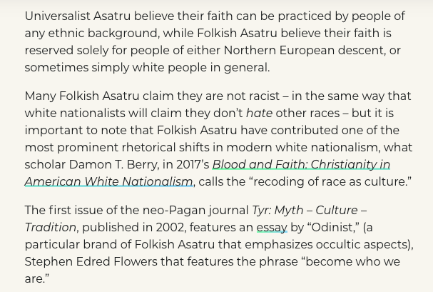 Key is "far right militia member." I have known Odinists who were not racists, but they were also not militia members.