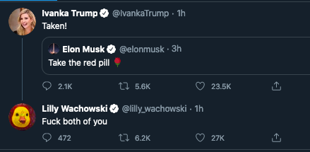 in the 90s, estrogen meant premarin, so the red pill meant estrogen. the blue pill was an antidepressant. it never ceases to be funny, and it's even funnier when cis women talk about it