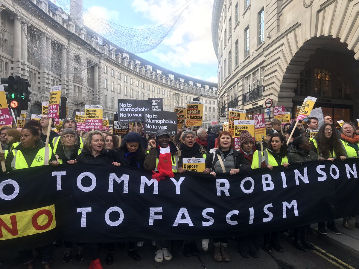 'Tommy Robinson', real name Stephen Yaxley Lennon, founder of the EDL & former BNP member, is trying to build a violent, racist, far right street movement with the support of open fascists Join the campaign to turn back the rise of racism & fascism. Visit http://www.standuptoracism.org.uk/join-donate/ pic.twitter.com/odyrDdfW7o