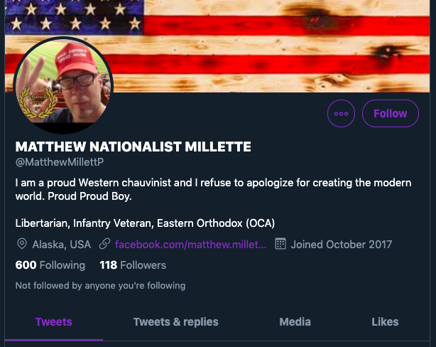 Matthew was not that hard to find, as his full name is featured on both his Twitter and the column he penned for the Proud Boys web magazine. 2/pic.twitter.com/bH4M7l2yqO