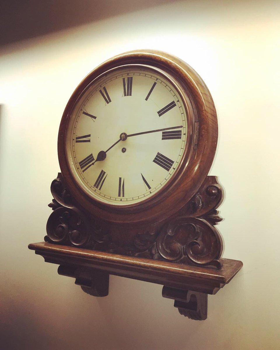 Just in....A good Victorian oak railway railway station gallery clock with a 5 pillar fusee movement. Open to offers. More details on :- http://Antiquesandchic.com or visit us at :- Antiquesandchic, 111 London Rd, sawbridgeworth, cm21 9jj.
