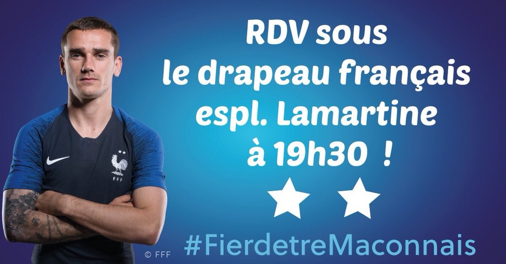 Antoine Griezmann donne rendez-vous aux Mâconnais le 20 juillet à 19h30 sur l'esplanade Lamartine. Il fera une apparition au balcon d'honneur de la Mairie de Mâcon pour saluer et remercier tous les supporters de sa ville natale