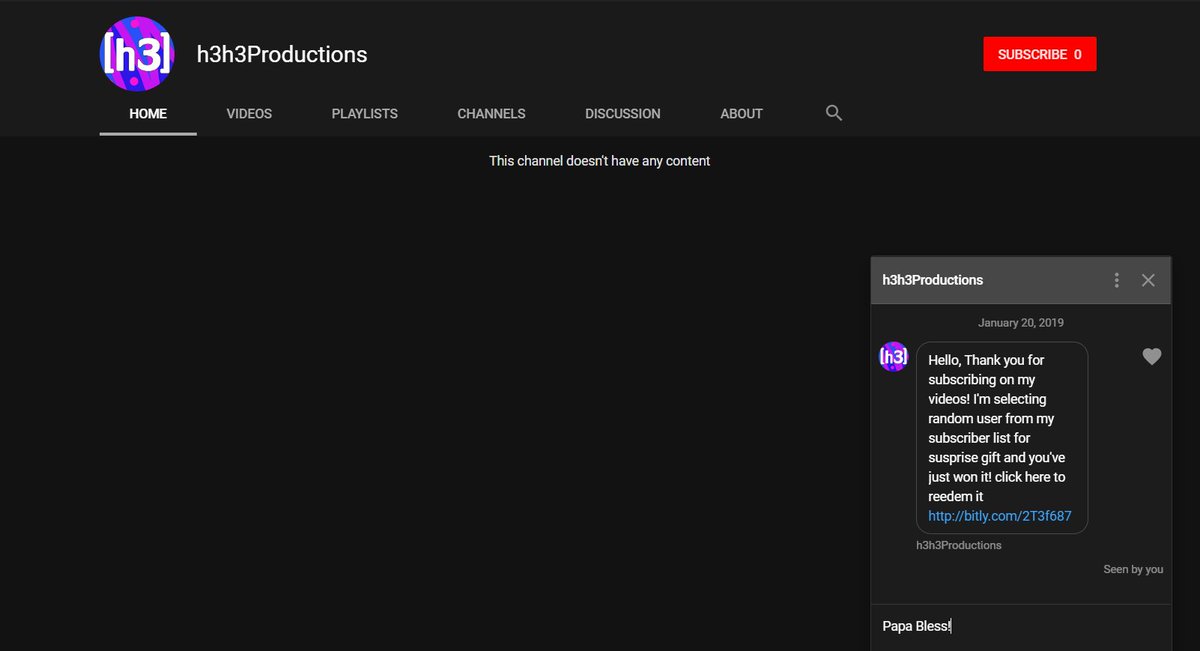 @YouTube @TeamYouTube I liked @h3h3productions video, and got a friend request from this user the next second. As soon as I accepted it, sent me a message asking me to click on a link. What's going on?pic.twitter.com/nionmvD8Hp