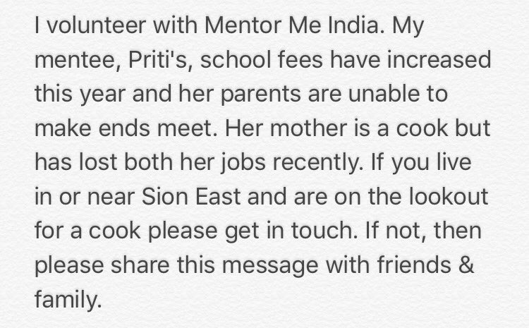 Looking for a cook in #Sion? Details below. Any leads would be appreciated. Please RT for good karma.#Mumbai#helppic.twitter.com/CSTVlfjJbF
