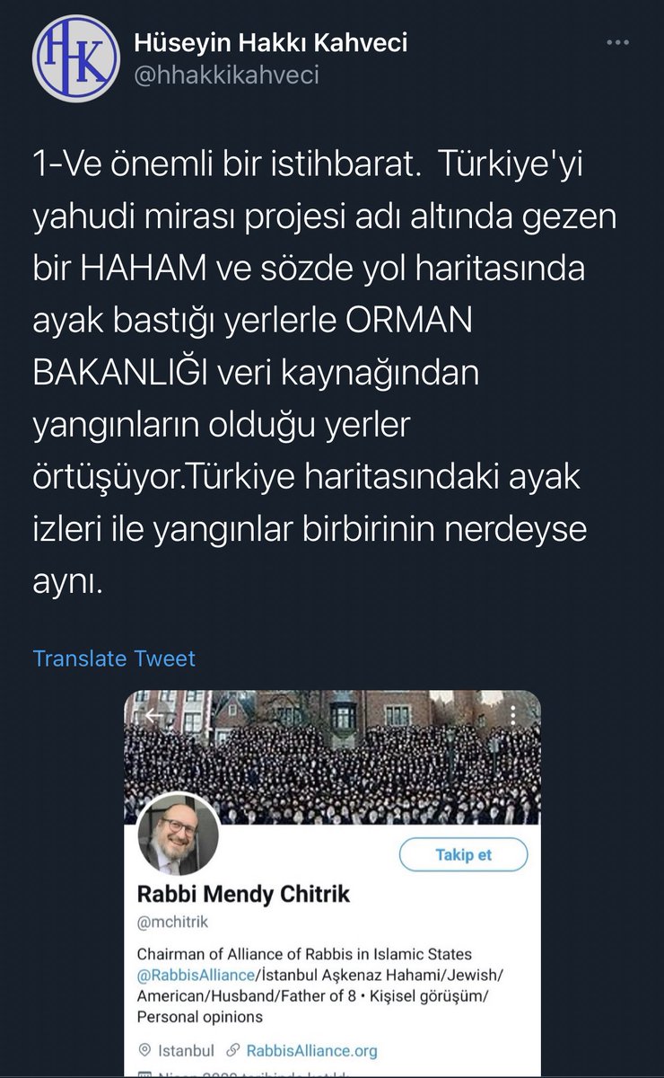 #Turkey as it confronts outrageous slanders, such as a commentator implying that wildfires across Turkey were linked to a rabbi visiting Jewish heritage sites because “the rabbis know Kabbala black magic well”:https://twitter.com/tyahuditoplumu/status/1420998267257692165 …