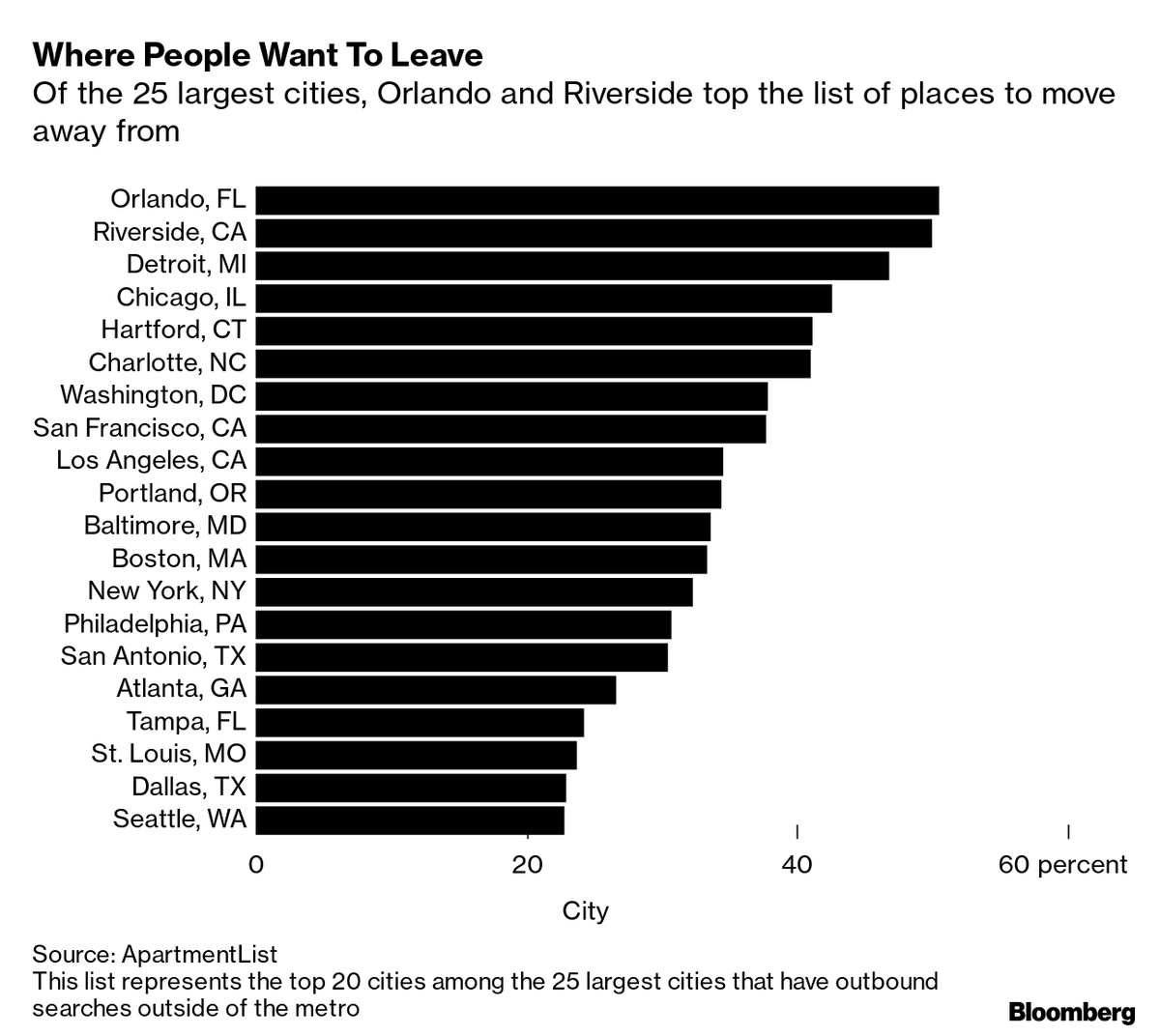 Here are the American cities people want to flee, according to recent search data collected by Apartment List. https://trib.al/BM3jzKo pic.twitter.com/skKBqGddYM