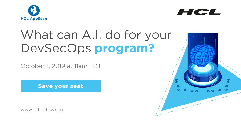 There's still time to save your seat for tomorrow's #webinar discussing the role of #artificialintelligence in your #AppSec program. #DevSecOps @BrightTALKhttps://twitter.com/HCLSoftware/status/1178747609835606024 …
