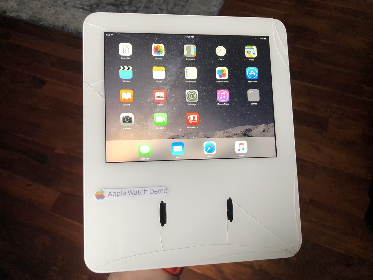 Apple Watch Demo (2015 Retail Display Unit) without the Apple Watch kinda looks like a Macintosh Classic when put onto its side.pic.twitter.com/LMYt1Td2lv