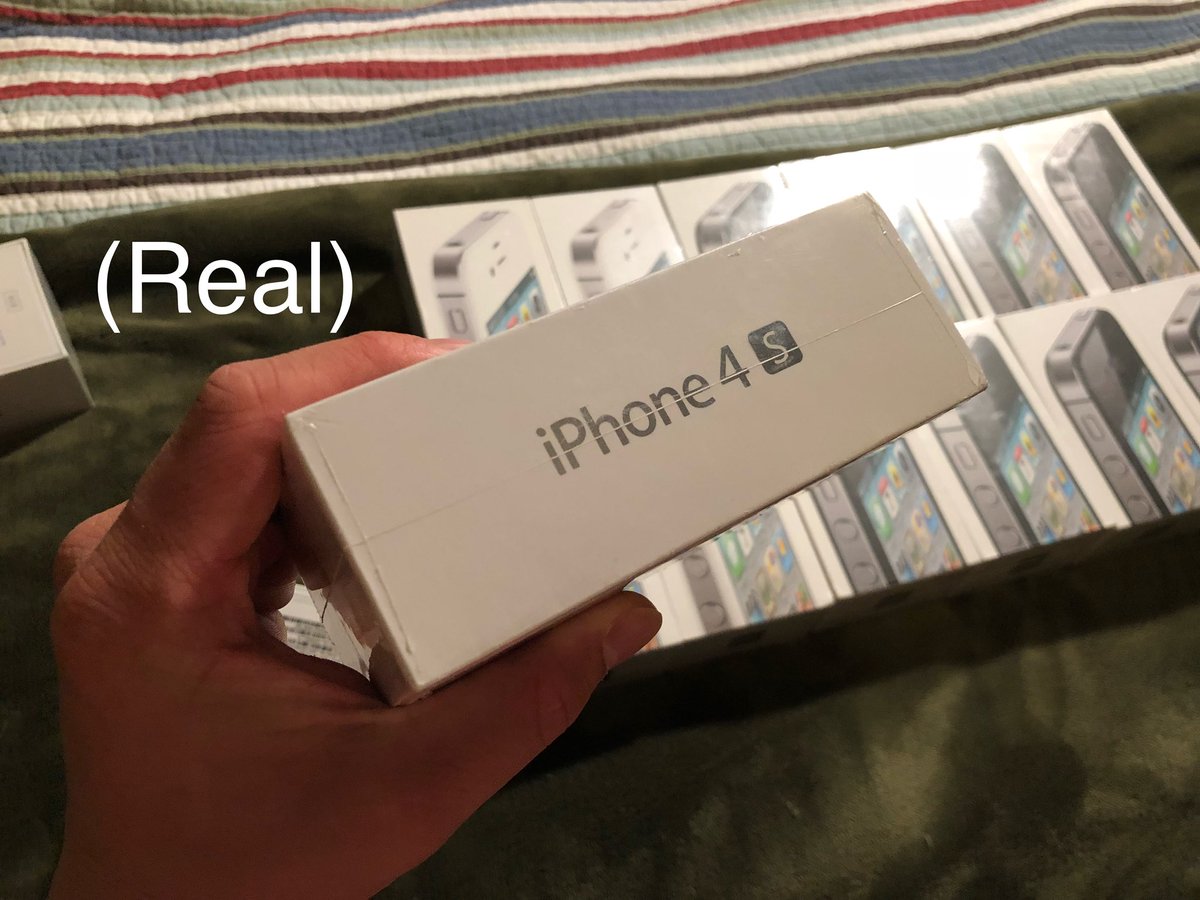 About 2 years ago, I purchased around 16 Sealed iPhone 4s Models from RadioShack (with the intent to sell in the future). I’m very glad I did this, because recently a TON of fake sealed “new” iPhone 4s phones have began to flood the market. Be careful what you buy everyone!!pic.twitter.com/kSYQziPtYM