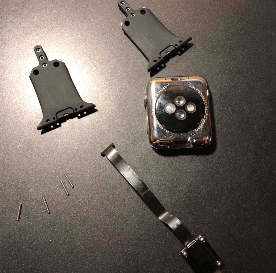 Here is my Apple Watch Demo Kiosk Display (A1623). The Watch itself has custom cutouts, with custom Apple Watch bands to make it “look” like it’s a full Watch when attached. The Watch is able to talk to the iPad though a special cable, that takes advantage of the diagnostic port.pic.twitter.com/MHFZJR5rgE