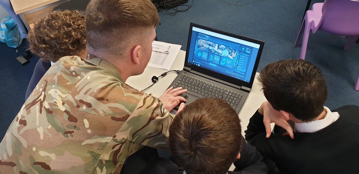 #ComputingDepartment are delighted to have the@R_Signals working with us today. Here's some of our Year 10/11 students having a career talk#ComputerScience#ArmySTEM#AmbitiousForAllpic.twitter.com/4scKkqUlaq