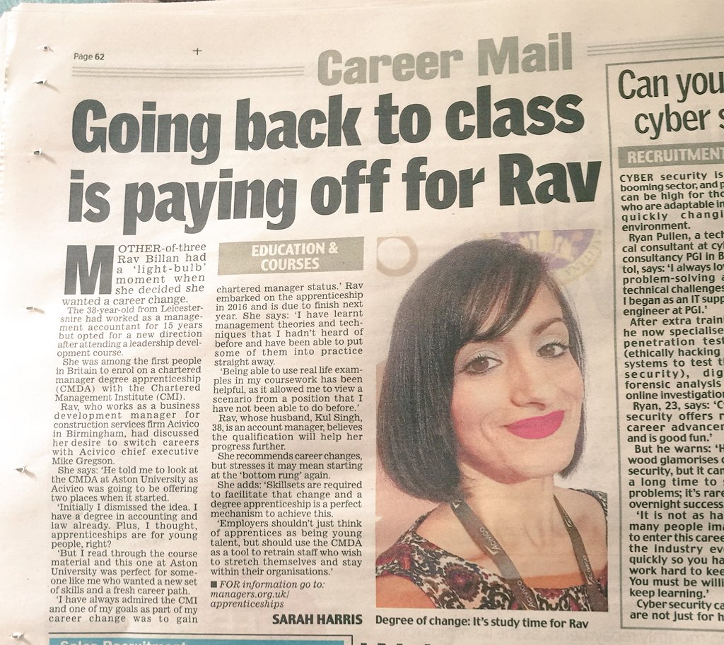 @ravbillan! She is living proof that#apprenticeships aren't just for young people starting out - they can help you progress in your existing career or even reinvent a new one.