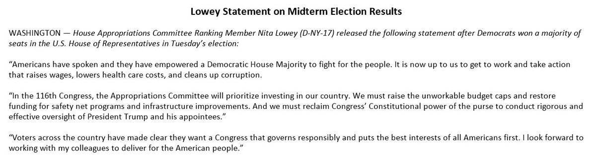 @NitaLowey’s full statement on the election results → https://bit.ly/2OwpCSj pic.twitter.com/8BC64dTDhe