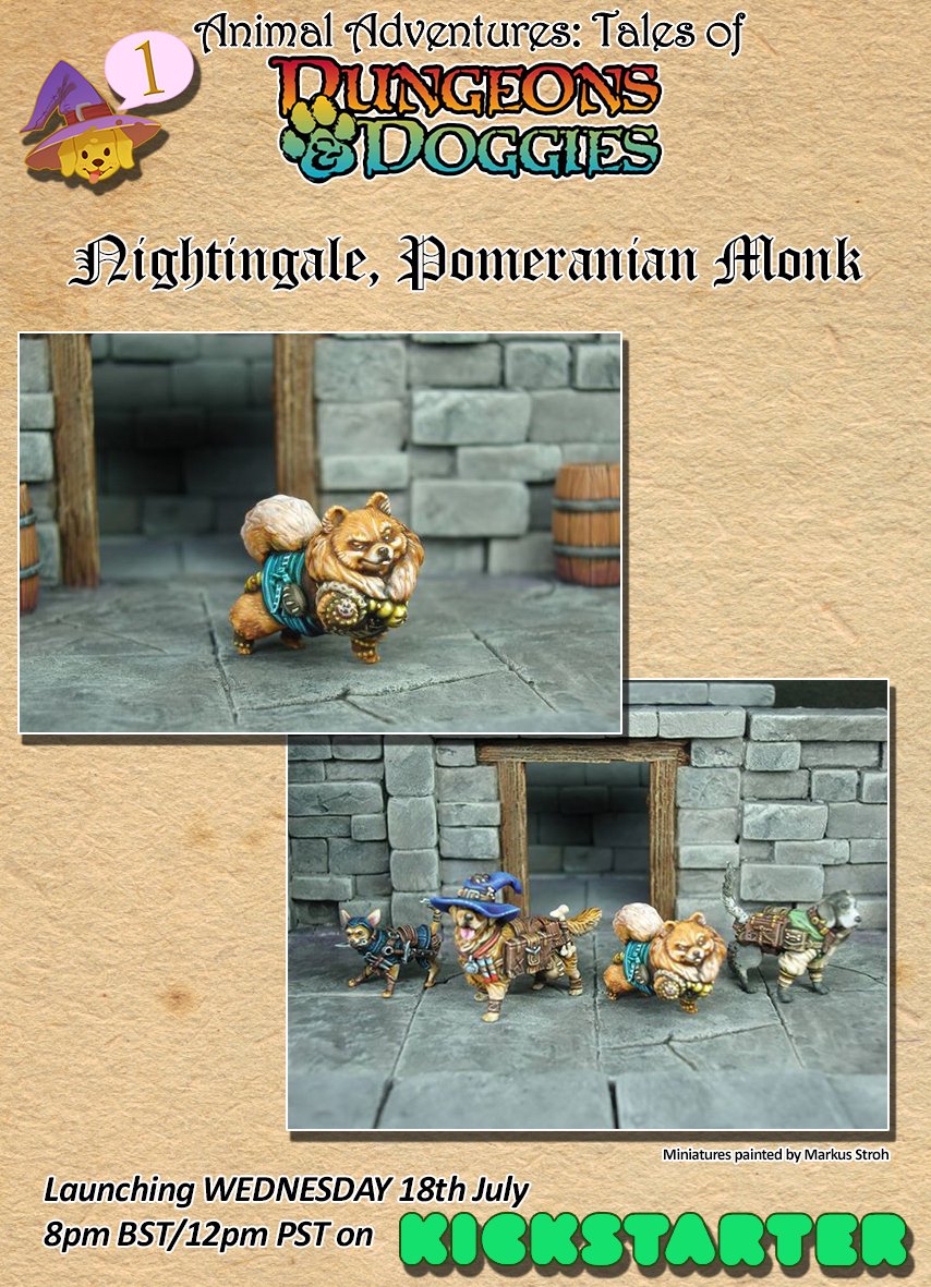#dungeonsanddoggies#DungeonsAndDragons kickstarter launches! Markus Stroh at Eavier Metal has done a fantastic job of Nightingale, our Pom Monk! You can meet her and ALL the doggies tomorrow WEDNESDAY 18th JULY from 8pm BST/ 12pm PST!pic.twitter.com/cQvgrS2LMz