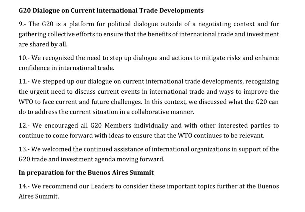 G20 Trade & Invesment Ministerial ends with a Joint Statement recognizing the need to step up dialogue & action 2 mitigate risks & enhance confidence in #trade @g20org @ITCnews proud 2 have contributed 👇 https://g20.org/sites/default/files/trade_and_investment_-_ministerial_statement.pdf …pic.twitter.com/G1Zo4zaXiA