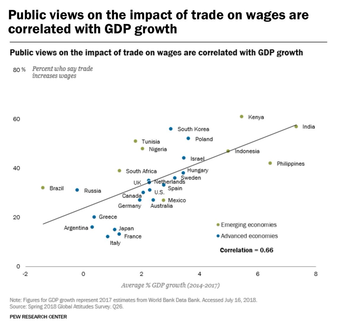 3/ public views on the impact of #trade on wages are correlated with GDP growth @pewglobal @ITCnews #worldtradeforum2018pic.twitter.com/D7qyCt4T0O