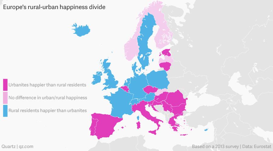 #Europe other north-south divide: where city dwellers are happier than rural residents http://qz.com/426094 pic.twitter.com/k7lPNsFGjz
