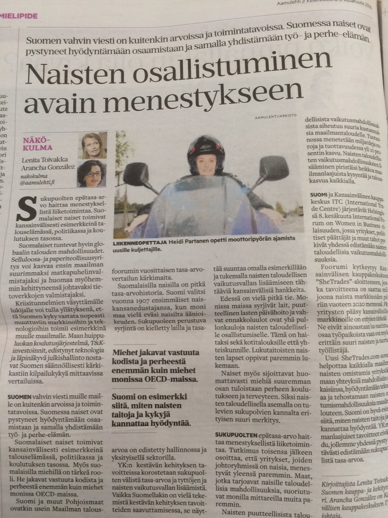 Article that Finnish trade & dev Minister @toivakka & myself have co-authored on today's @aamulehti on #SheTradespic.twitter.com/2qBdK1LjbC