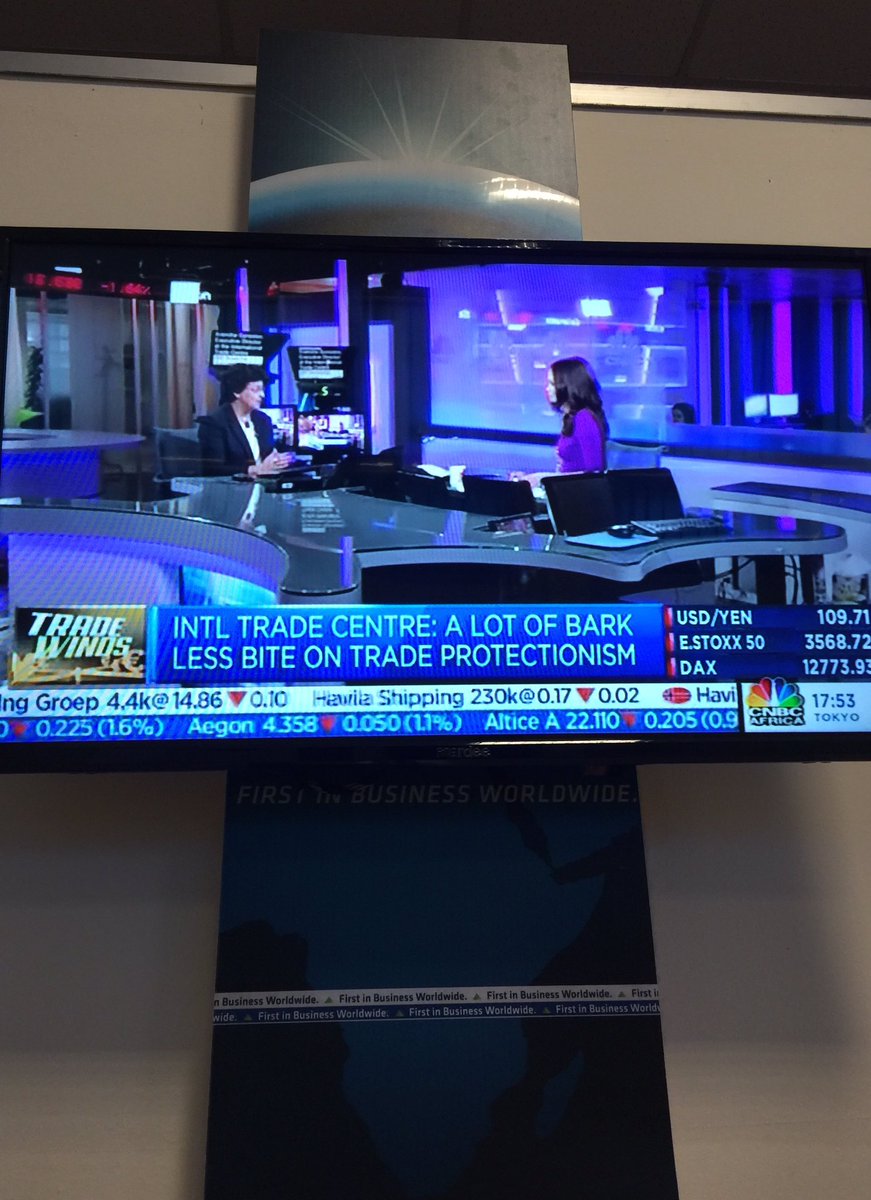 One @AranchaGlezLaya live on @CNBC re: the rise of protectionism & politics of globalistion. Carrying that ITC flag high. Africa's watching.pic.twitter.com/qQUKrTv0Sz