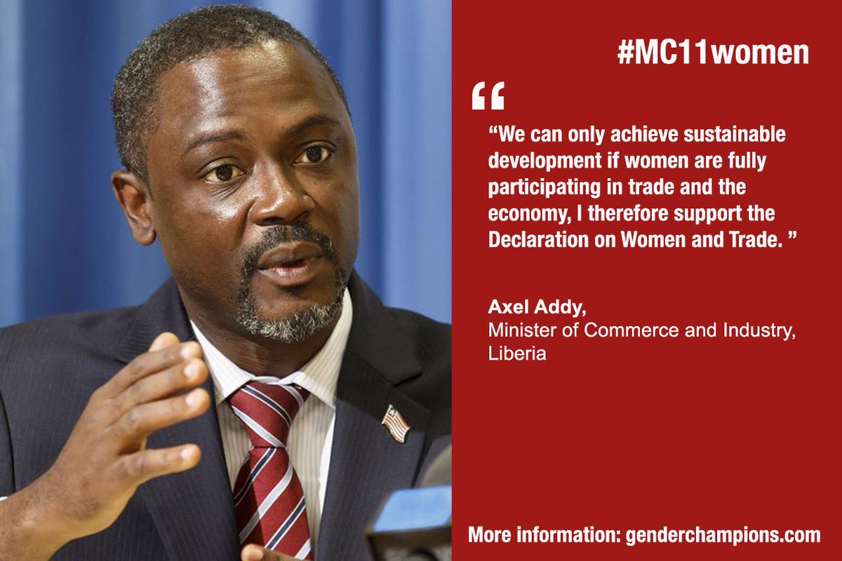 Tks #Liberia Trade Minister @AxelAddy 4 being a champion of #Women&Trade at @wto #MC11womenhttps://twitter.com/itcnews/status/930309763493068800 …