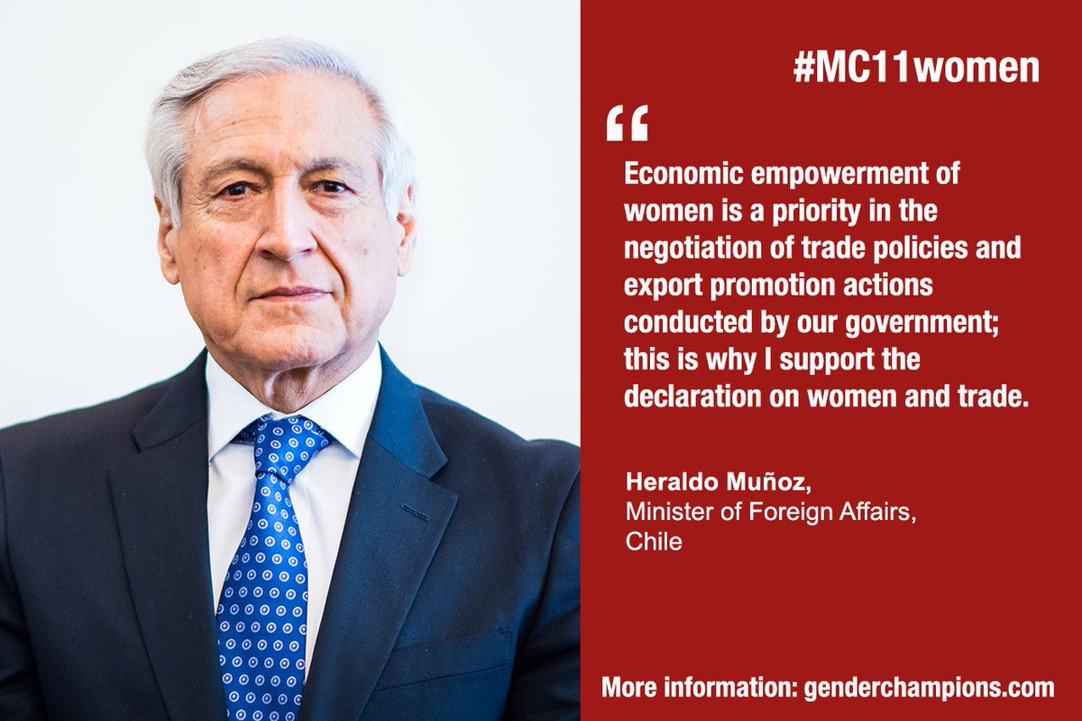 Tks #Chili Foreign Minister Heraldo Muñoz 4 supporting women & trade at the @wto #MC11women #SheTrades @HeraldoMunoz @ChileONUGinebra @ChileMFA @GobiernodeChile @INTGenderChampshttps://twitter.com/itcnews/status/936219875638415360 …