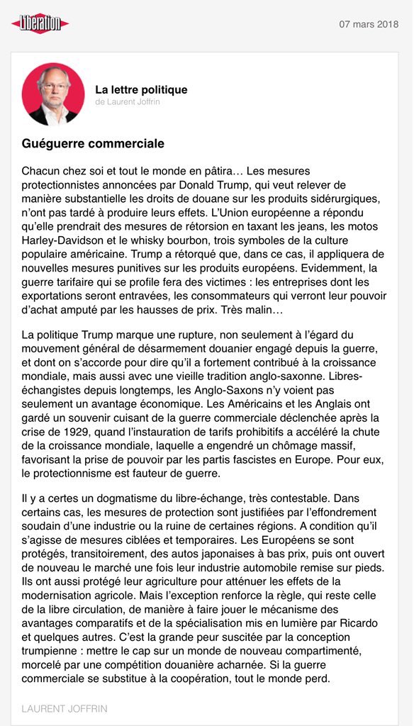 La guéguerre commerciale #protectionnisme en rime pas avec #protection @libe @ITCnewspic.twitter.com/7fCFBxNPl7
