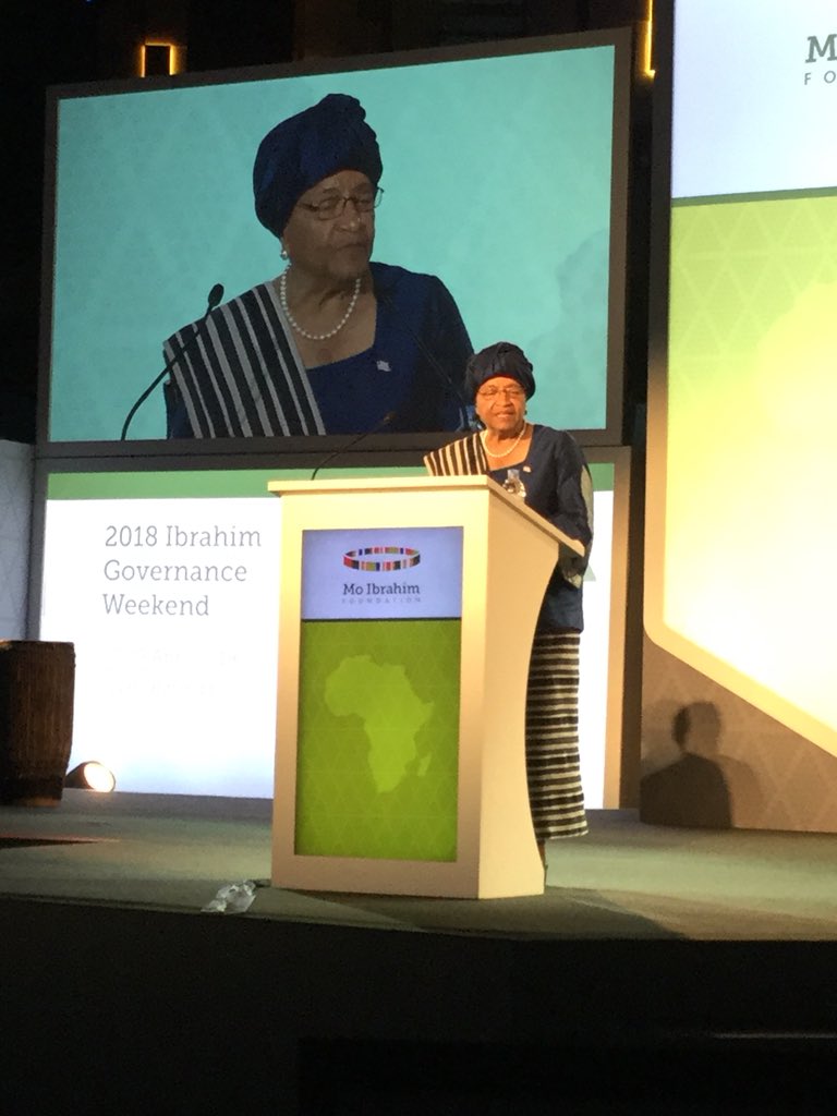 Humbling moment 2 hear the acceptance speech by former #Liberia President Ellen Johnson Sirleaf as she receives the @Mo_IbrahimFdn Leadership Prize 2017