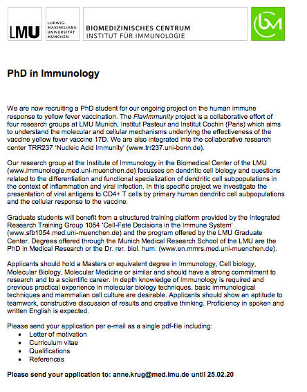 #FlavImmunity is hiring! PhD student wanted. Interested in#arboviruses#Immunology and#Virology between Munich