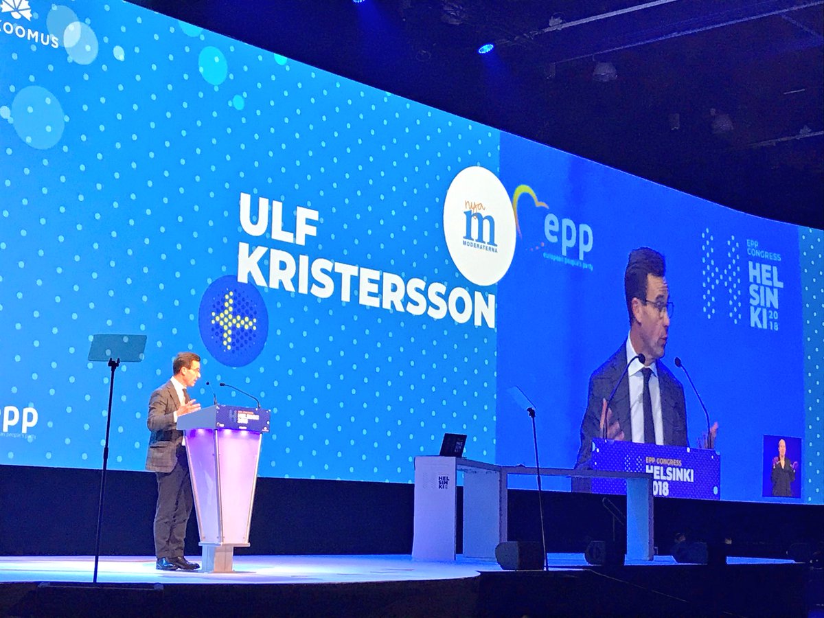 Ulf Kristersson talar för sina EU-kollegor om att EU måste jobba tillsammans för frihandel, bekämpa terrorism, och för en gemensam migrationspolitik. #EPPHelsinki #Up2EU #eupol #svpolpic.twitter.com/rY0z4kHQyj