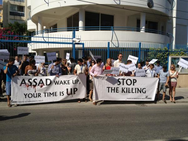 MUF demonstrerar med YEPP utanför Syriens ambassad på Cypern! @mufswe @YouthEPP #Syrien #mufswe #eupolpic.twitter.com/JB8aWQ1g