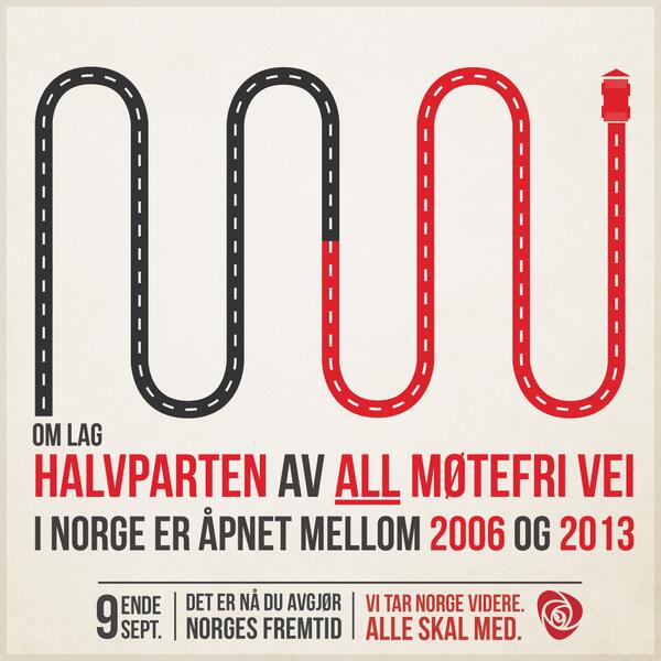 Om lag halvparten av all møtefri vei i Norge er åpnet mellom 2006 og 2013. #Norgevidere #2valgpic.twitter.com/b7mxsURMZP