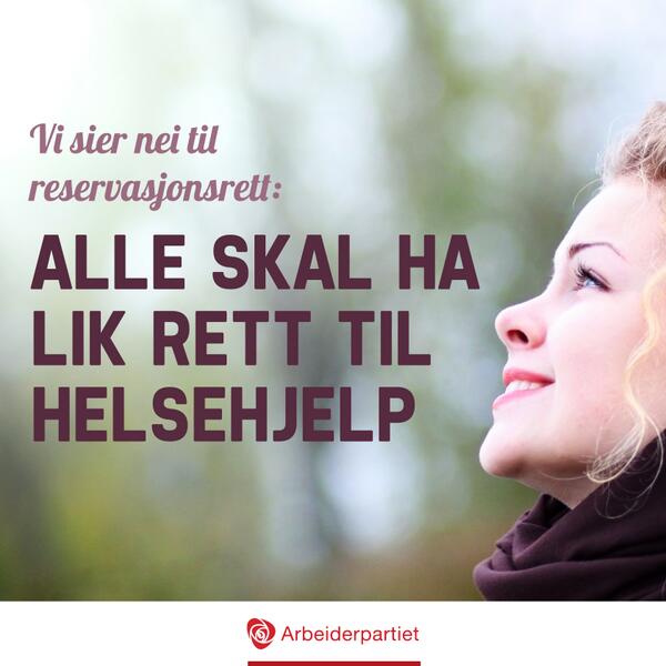 @Arbeiderpartiet: I dg stemmer vi mot reservasjonsretten & for lik helsehjelp til alle i Stortinget. Er du enig? pic.twitter.com/W8Ui4rdxB1”