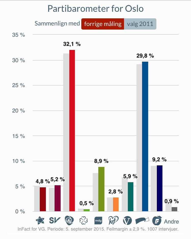 God måling for oss i #Oslo i VG i dag! – Folk i hovedstaden vår er klare for et skifte. @osloap #valg15pic.twitter.com/bRk3reqgb2