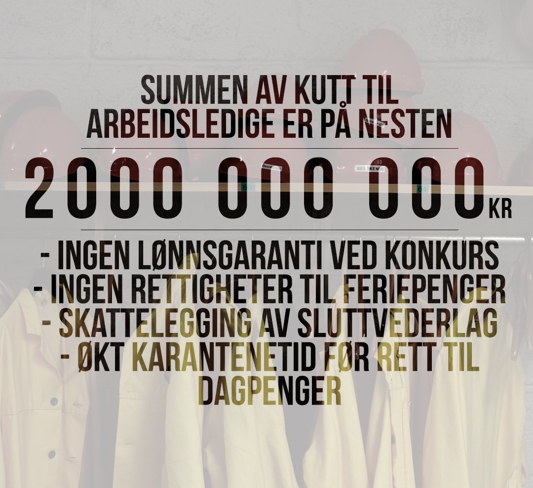 Summen av kutt til arbeidsledige er på nesten 2 milliarder kroner. #finansdebatt #statsbudsjettpic.twitter.com/zgLOVOu7fW