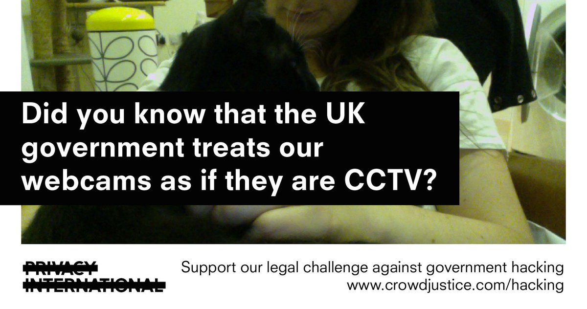 Don't want the government watching you when you're hanging out with your cat? Help @privacyint fight them in court https://www.crowdjustice.com/case/hacking/ pic.twitter.com/bfC41GQmjD