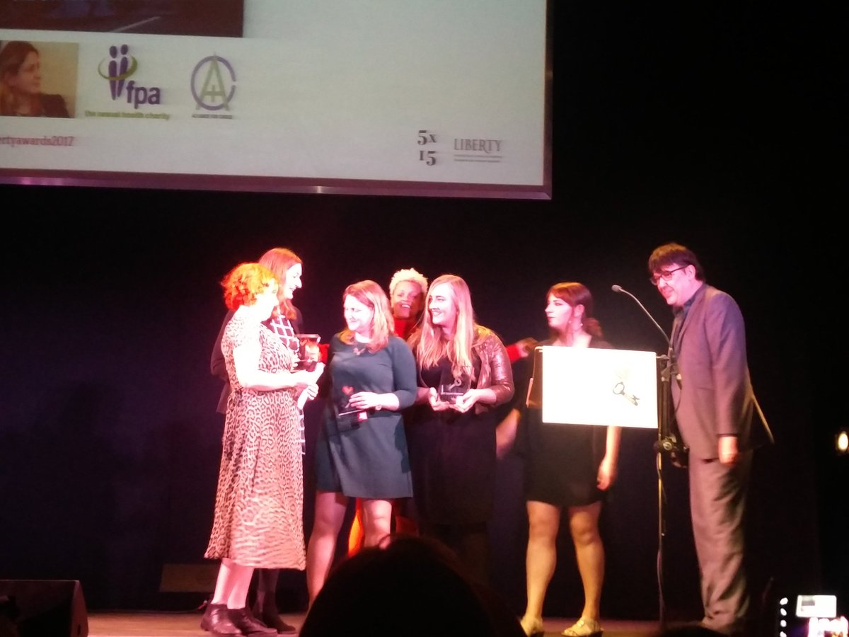 Amazing bunch of powerful women at the #libertyawards2017 collecting the 'long walk' award on behalf of the NI abortion rights movementpic.twitter.com/XmwqZYFwrO