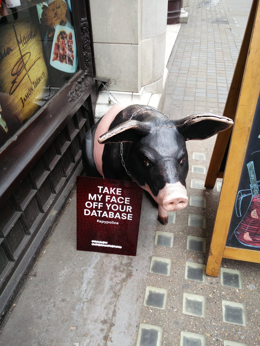 Tories know a thing or two about pigs. We found this one on the #MayDay march and they want the police to take them out of their database. #spypolicepic.twitter.com/2xq34qPboa