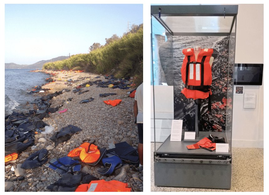 Brilliant to see the refugee's life jacket collected on the island of Lesvos for the