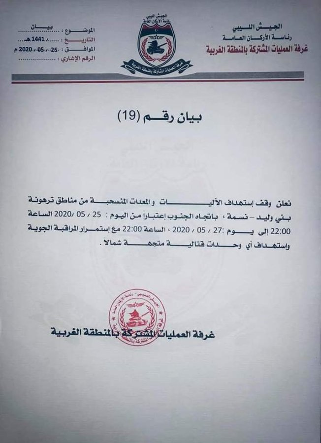 LNA spox: We decided to relocate outside Tripoli, based on the approval of the General Command, to resume its participation in the ceasefire committee. via