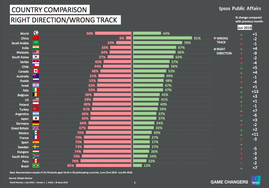 1. 63% of Argentines say the country is on the "wrong track," according to @Ipsos's July "What Worries the World" survey, highlighted by @gzeromedia today. https://www.ipsos.com/en/what-worries-world-july-2018 … #Argentina
