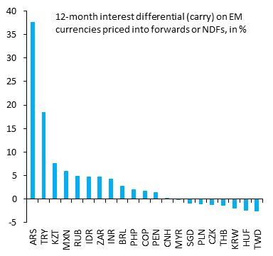 So I do think this is a big deal. The question then is which EMs benefit the most? Relative to the Fed's dovish shift in 2016, there are places where carry is higher. Argentina and Turkey stand out. And we have flagged Brazil as highly favorable from a positioning point of view. pic.twitter.com/ZJPiEmjeRl