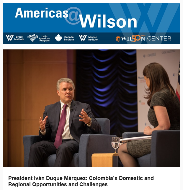 Congratulations to @LATAMProg, @BrazilInst and @MexicoInstitute for recent successes, including events with President Iván Duque of #Colombia and #Venezuela's interim chargé d’affaires, Carlos Vecchio, and a conversation about AMLO's trade policy in #Mexico.pic.twitter.com/eCA3vk4SLH